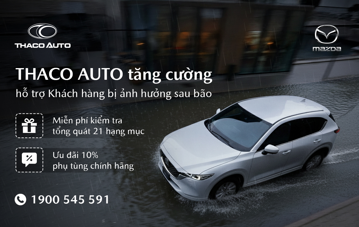 Với tinh thần tận tâm và luôn đồng hành cùng khách hàng trong mọi hoàn cảnh, THACO AUTO triển khai chương trình “Đồng hành cùng khách hàng Miền Bắc” nhằm chia sẻ và hỗ trợ sớm khắc phục hậu quả sau thiên tai dành cho khách hàng sử dụng xe Mazda.